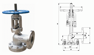不銹鋼角式放料閥外形結(jié)構(gòu)圖: