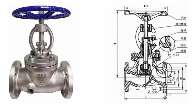 不銹鋼保溫截止閥外形結(jié)構(gòu)圖: