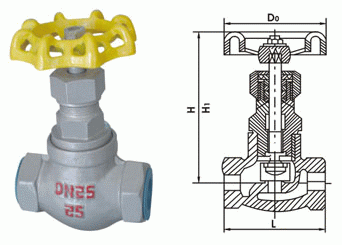 內(nèi)螺紋氨用截止閥外形結(jié)構(gòu)圖: