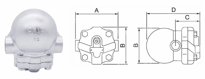 不銹鋼杠桿浮球式內(nèi)螺紋疏水閥外形結(jié)構(gòu)圖: