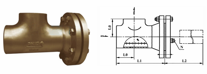 鋁青銅T型過(guò)濾器外形結(jié)構(gòu)圖: