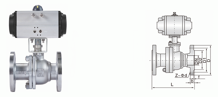 不銹鋼氣動(dòng)球閥外形結(jié)構(gòu)圖: