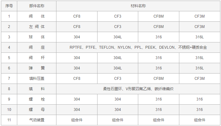 不銹鋼氣動(dòng)球閥零件材料: