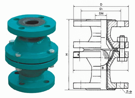 浮球式襯膠止回閥根據(jù)材質(zhì)的不同,可以適用于各種介質(zhì)的管路上。止回閥安裝在管路上,即成為這一完整管路的流體部件之一,其閥瓣啟閉過(guò)程就要受它所處系統(tǒng)瞬變流動(dòng)狀態(tài)所影響;反過(guò)來(lái),閥瓣的關(guān)閉特性又對(duì)流體流動(dòng)狀態(tài)產(chǎn)生作用。浮球式襯膠止回閥在大多數(shù)實(shí)際使用中,定性地確定用于快速關(guān)閉,而在止回閥關(guān)閉的瞬間,介質(zhì)方向是流動(dòng)的,隨著閥瓣的關(guān)閉,介質(zhì)從大倒流速度迅速降至零,而壓力則迅速升高,即產(chǎn)生可能對(duì)管路系統(tǒng)有破壞作用的“水錘”現(xiàn)象。對(duì)于多臺(tái)泵并聯(lián)適用的高壓管路系統(tǒng),止回閥的水錘問(wèn)題更加突出。浮球式襯膠止回閥是自動(dòng)工作的,在一個(gè)方向流動(dòng)的流體壓力作用下,閥瓣打開(kāi);流體反方向流動(dòng)時(shí),由流體壓力和閥瓣的自重合閥瓣作用于閥座,從而切斷流動(dòng)。浮球式襯膠止回閥外形結(jié)構(gòu)圖: