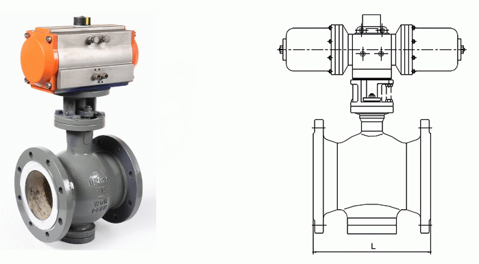 氣動陶瓷偏心半球閥外形結(jié)構(gòu)圖: