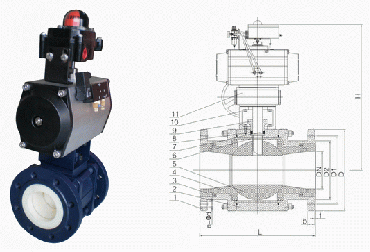 氣動(dòng)耐磨陶瓷球閥外形結(jié)構(gòu)圖: