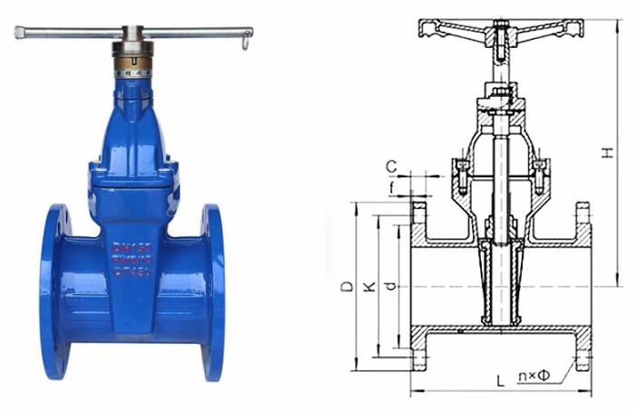 1、安裝方便:安裝后拿附件扳手,套在閥門頂部鍵槽內(nèi)打開(或關(guān)閉)閥門的閘板,順時針關(guān),逆時針開。