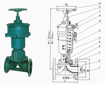 3、視膠隔膜閥的閥體內(nèi)腔表面視復(fù)有廳供選擇的多種橡膠。因此具有優(yōu)越的耐腐蝕的特點。