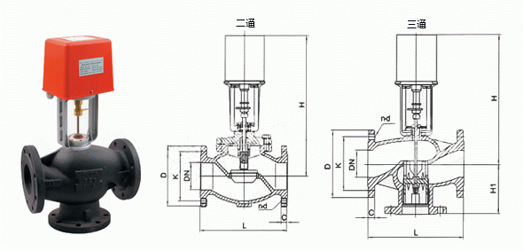 電動三通閥外形結構圖: