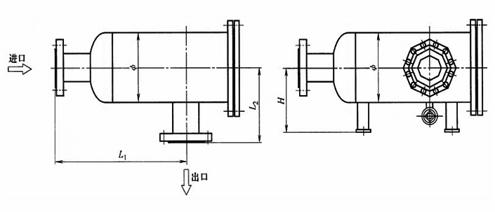 臥式過濾器是一種臥式安裝適用于介質(zhì)為液體的管道用籃式過濾器,由封頭和筒體組成殼體,其左側(cè)和正面方向分別設(shè)有流體進口和出口,殼體內(nèi)置有有利于機械雜質(zhì)分離沉降的濾芯,并經(jīng)側(cè)蓋和殼體右側(cè)端蓋法蘭通過緊固螺母壓緊固定,工作時,待處理液體從左側(cè)進液口進入過濾器內(nèi),經(jīng)過置有一定規(guī)格濾網(wǎng)的濾筒后將固體雜質(zhì)濾除掉,從出液口流出即可,當需要清洗時,只要將可拆卸的側(cè)蓋打開,把濾芯從筒體內(nèi)抽出,處理后重新裝入即可,因此,使用維護極為方便。
