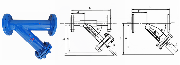 管道用三通Y型過濾器外形結(jié)構(gòu)圖: