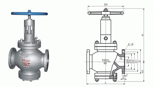 閥套式法蘭排污閥外形結(jié)構(gòu)圖: