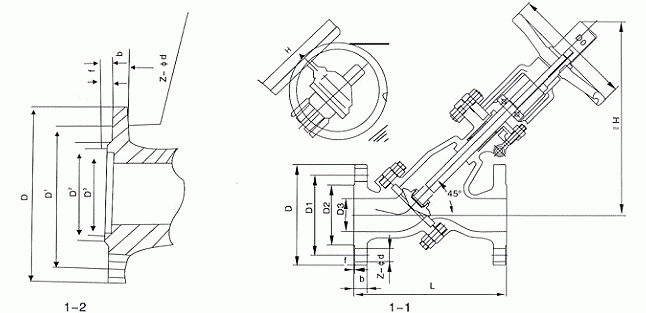Y型料漿閥外形結(jié)構(gòu)圖: