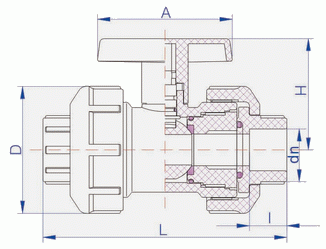 Q61F-16S承插式塑料球閥外形結(jié)構(gòu)與連接尺寸: