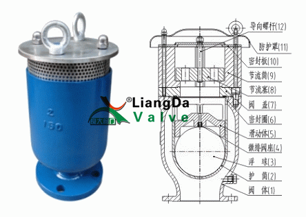 具有防水錘功能,即:保證在管線出現(xiàn)水柱拉斷時(shí)的負(fù)壓工況下,迅速大量排氣,以避免負(fù)壓的產(chǎn)生產(chǎn);而當(dāng)隨后出現(xiàn)的水柱彌合工況時(shí),閥門有效地限制排氣,通過延緩排氣時(shí)間,在管道當(dāng)中造成空氣囊似的彈性壓縮空間,阻止快速的水柱彌合可能造成的壓力升高,即水錘。
