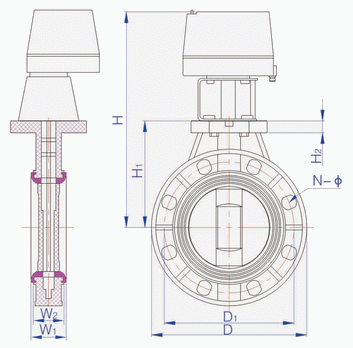 D971X-10S電動塑料蝶閥外形結構圖: