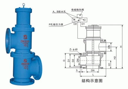 電磁液動立式三通閥結(jié)構(gòu)特點:
