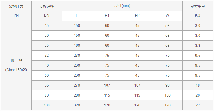 CS49H圓盤(pán)式蒸汽疏水閥外形尺寸表: