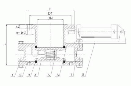 氣動(dòng)耐磨陶瓷圓盤閥外形結(jié)構(gòu)圖: