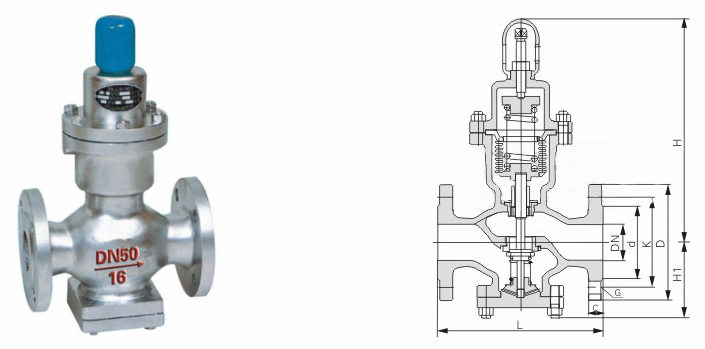 波紋管式減壓閥外形結(jié)構(gòu)圖: