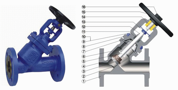 德標(biāo)Y型波紋管截止閥外形結(jié)構(gòu):