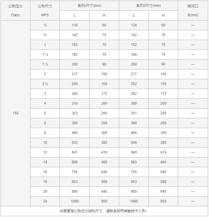 哈氏合金Y型過(guò)濾器外形尺寸表: