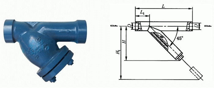 Y型承插焊過(guò)濾器外形結(jié)構(gòu)圖: