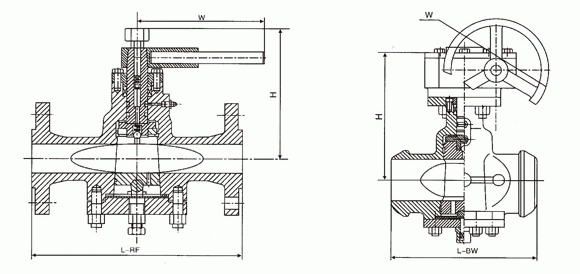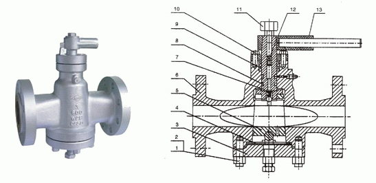 美標(biāo)平衡式旋塞閥外形結(jié)構(gòu)圖: