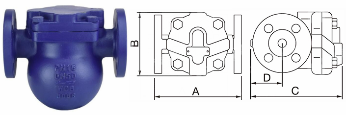 FT44H杠桿浮球式蒸汽疏水閥外形尺寸表: