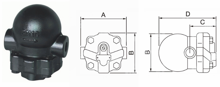 FT14H杠桿浮球式蒸汽疏水閥外形結(jié)構(gòu)圖: