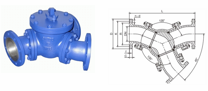 Y型三通球閥外形結(jié)構(gòu)圖: