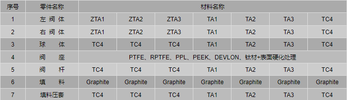 TA2、ZTA2鈦合金球閥零件材料: