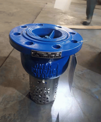 濾網(wǎng)式底閥是一種節(jié)約能源的閥,一般安裝在水泵水下吸管的底端限制水泵管內(nèi)液體返回水源,起著只進(jìn)不出的功能。底閥由閥體,閥瓣,閥蓋,襯套,密封圈等零件組成,詳見下圖水源的水從閥蓋進(jìn)入閥體。在流體的壓力作用下,閥瓣打開水,當(dāng)示停后出口管內(nèi)的壓力將閥瓣迅速關(guān)閉,液體將不會(huì)倒回水源,起到了即暢通抽水又節(jié)約水能損失的作用。濾網(wǎng)式底閥產(chǎn)品實(shí)物圖: