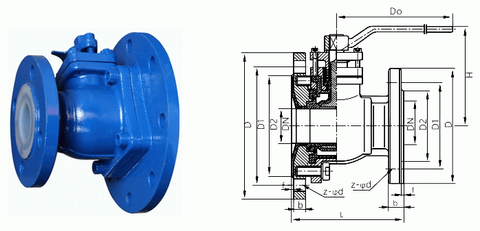 反應(yīng)釜襯氟放料球閥是一種將球閥的閥蓋改變成一個(gè)進(jìn)料口呈倒喇叭形的上體,并能直接與反應(yīng)釜釜底連接成一體,作為反應(yīng)釜的放料口,閥體則完全按浮動(dòng)球閥的裝配要求設(shè)計(jì)的球式放料閥,其球體與釜底間距小,不混料和沉積死料的可能性很小。該閥與介質(zhì)接觸的過流部件上全部模壓成型有氟塑料層,用來隔開流體與金屬表面的直接接觸,其中的球體與閥桿采用一體式金屬嵌件外包氟塑料工藝制造,具有耐腐密封性好、操作靈便快捷、強(qiáng)度高及經(jīng)久耐用等特點(diǎn)。