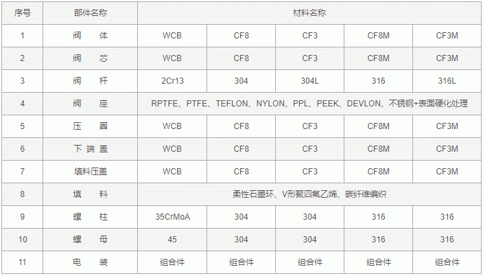對(duì)夾式電動(dòng)V型球閥零件材料: