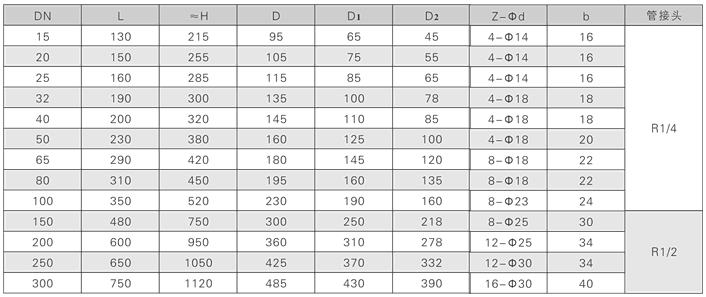 公稱通徑:DN15~300mm