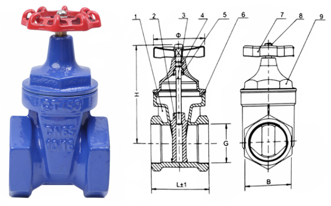 內(nèi)螺紋彈性座封閘閥外形結(jié)構(gòu)圖: