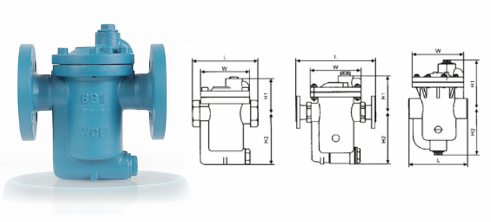 倒置桶式法蘭蒸汽疏水閥外形結(jié)構(gòu)圖: