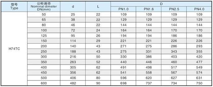 陶瓷對夾式止回閥連接尺寸: