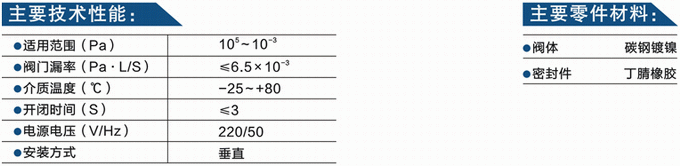 低真空電磁壓差充氣閥技術(shù)性能: