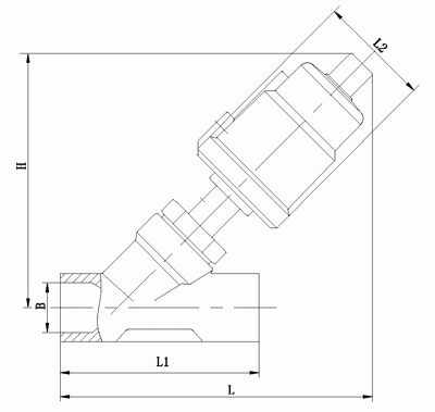 全不銹鋼焊接式氣動(dòng)角座閥外形結(jié)構(gòu)圖: