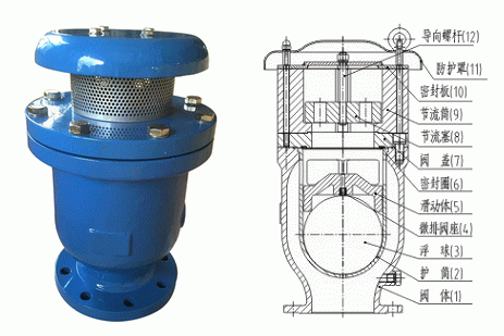 具有防水錘功能,即:保證在管線出現(xiàn)水柱拉斷時(shí)的負(fù)壓工況下,迅速大量排氣,以避免負(fù)壓的產(chǎn)生產(chǎn);而當(dāng)隨后出現(xiàn)的水柱彌合工況時(shí),閥門有效地限制排氣,通過延緩排氣時(shí)間,在管道當(dāng)中造成空氣囊似的彈性壓縮空間,阻止快速的水柱彌合可能造成的壓力升高,即水錘。