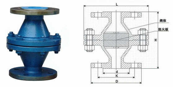 GYW型阻燃爆管道阻火器外形結(jié)構(gòu)圖: