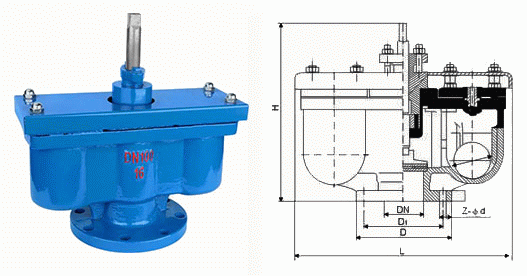當需要排出管道內的氣體時,應逆時針方向旋轉閥桿,使其閥桿連同閥門上升,使管道內的空氣在水的壓強作用下進入體腔內,并從排氣嘴排出,隨之管道內的水充滿體腔內,使浮球在水的浮力作用下,向上移動將排氣嘴堵塞,達到自行密封,管道在正常行中,水中的空氣在壓強的作用下,不斷排入排氣閥的體腔上部,迫使浮球下降,離開原來密封位置,這時空氣又從排氣嘴排出,隨之,浮球又恢復到原來位置自密封,因此,排氣閥在正常工作中閥門始終是開著的,浮球不斷重復上述動作,空氣不斷排出,當需要檢修或清掃體腔時,應將閥門關閉。本排氣閥,順時針旋轉閥桿時為關閉。