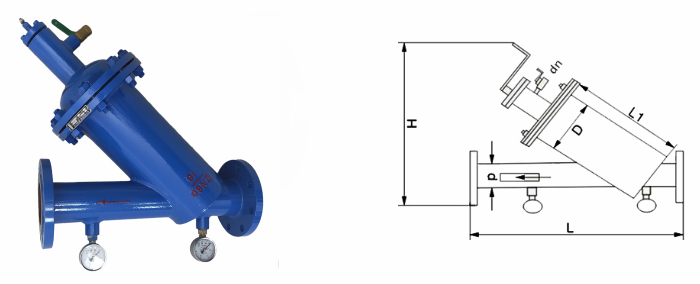 手搖刷式除污器要由殼體、端蓋、濾筒濾網(wǎng)、帶手柄的不銹鋼刷或毛刷、排污閥及壓力表等部件組成。其濾筒放置在殼體內,并通過端蓋采用螺栓螺母壓緊固定,濾網(wǎng)裝在濾筒內,在濾網(wǎng)內還有一帶轉動軸的不銹鋼刷或毛刷,刷子緊貼在濾網(wǎng)上,轉軸在筒體外有一搖手,在端蓋與轉動軸連接處還有一排污閥,排污閥一般為手動球閥。當需要清洗濾網(wǎng)上雜質時,搖動搖手,帶動轉軸和刷子旋轉,將濾網(wǎng)上雜質刷下,同時打開排污閥,在管道介質壓力的作用下,將雜質從排污閥排出,完成清洗過程。