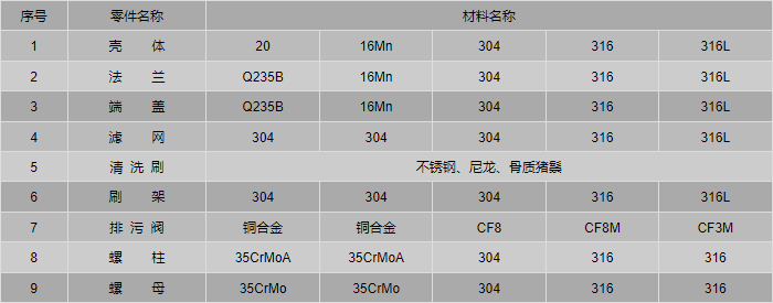 手搖刷式除污器零件材料: