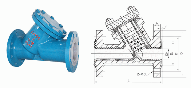 Y型襯氟過濾器外形結(jié)構(gòu)圖: