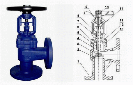 角式波紋管截止閥外形結(jié)構(gòu)圖: