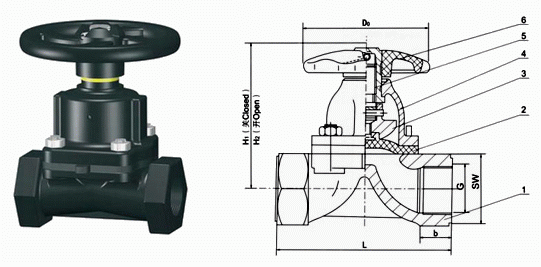 絲口隔膜閥外形結構圖: