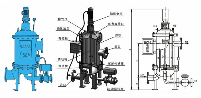 全自動(dòng)反沖洗過濾器外形結(jié)構(gòu)圖: